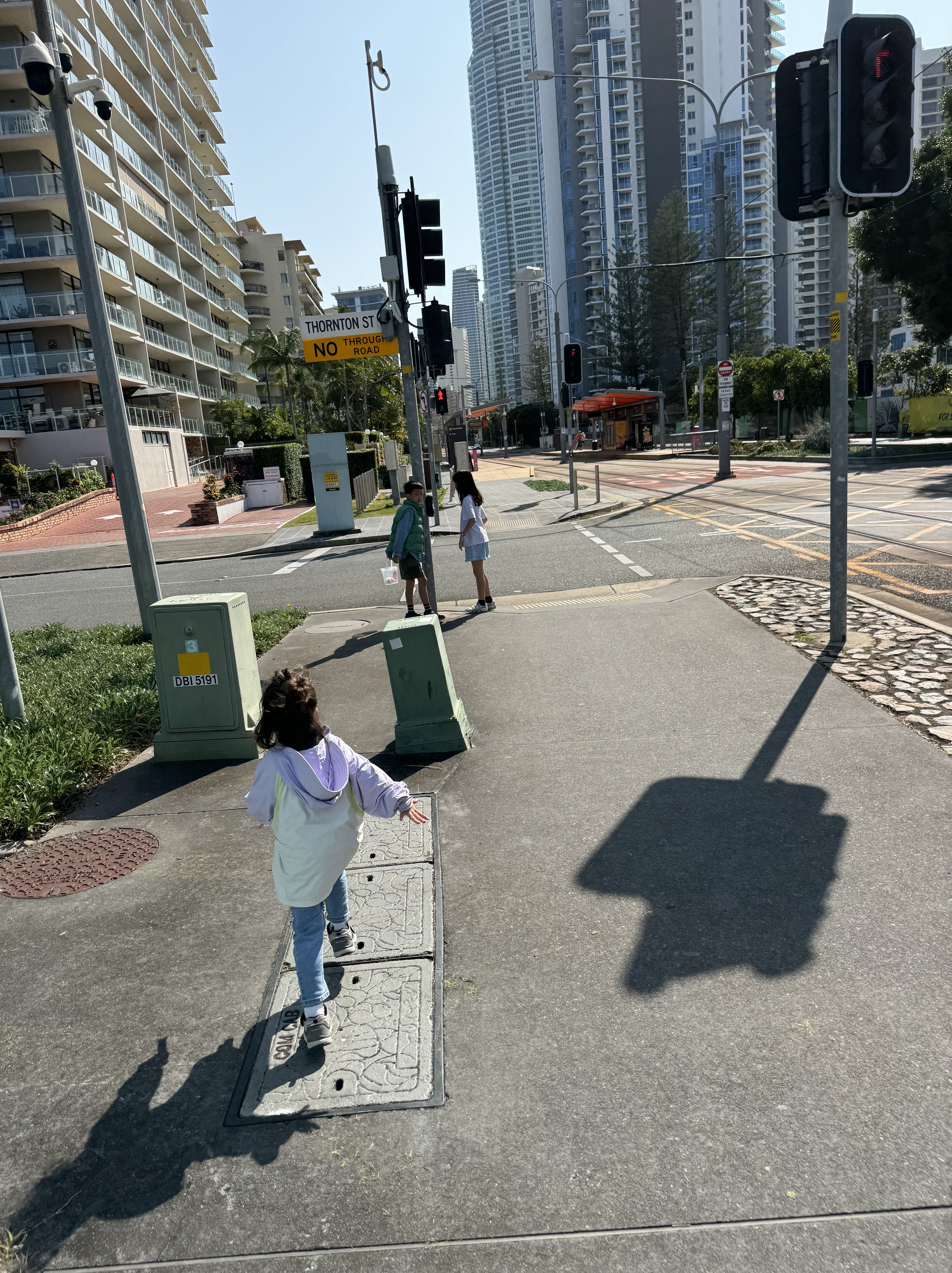 現在走在馬路上,小孩也會碎念在澳洲車子早就停下來讓我們過馬路了(當時在沒有紅綠燈的斑馬線),還有台灣的路沒那麼好走。