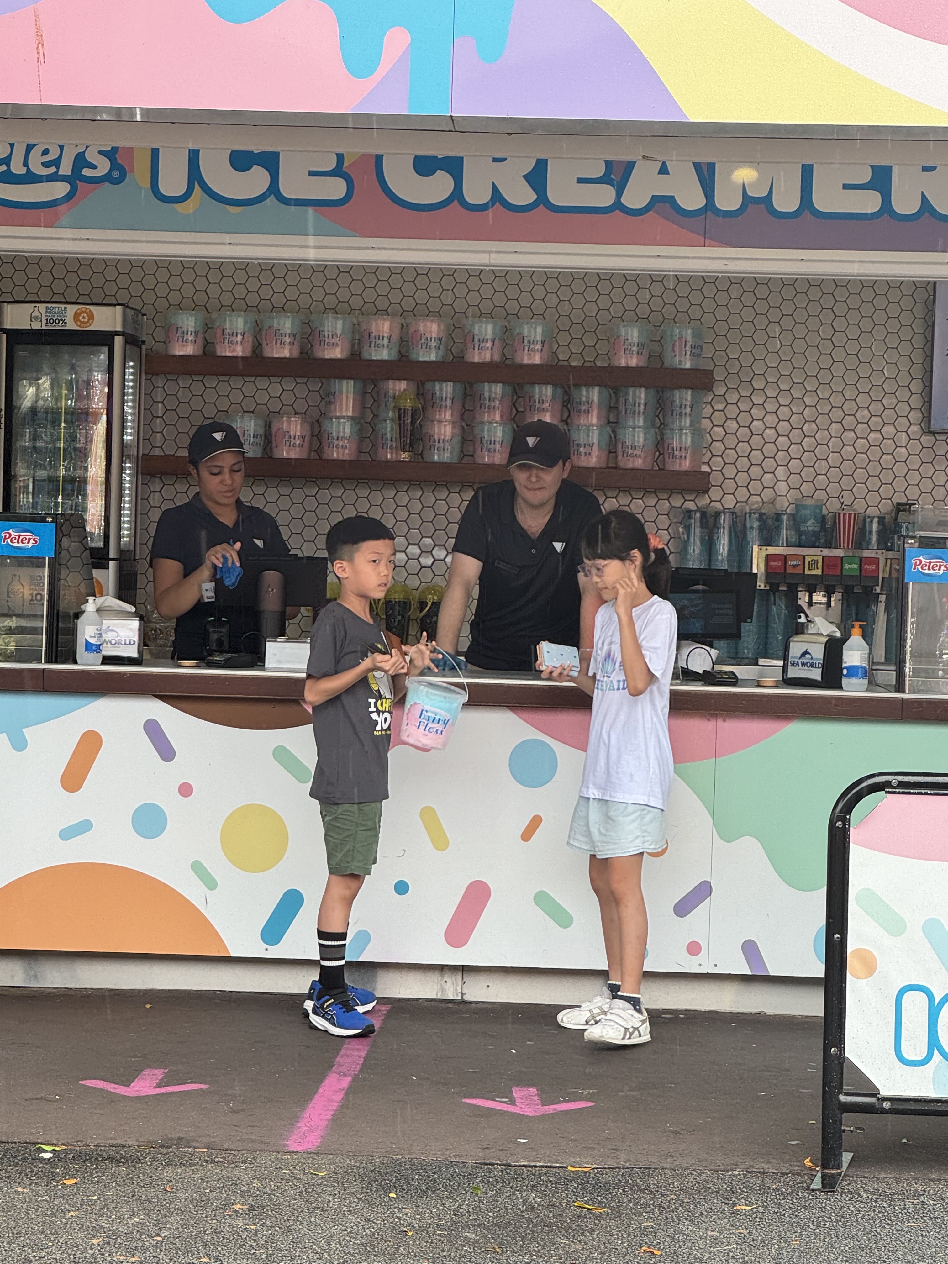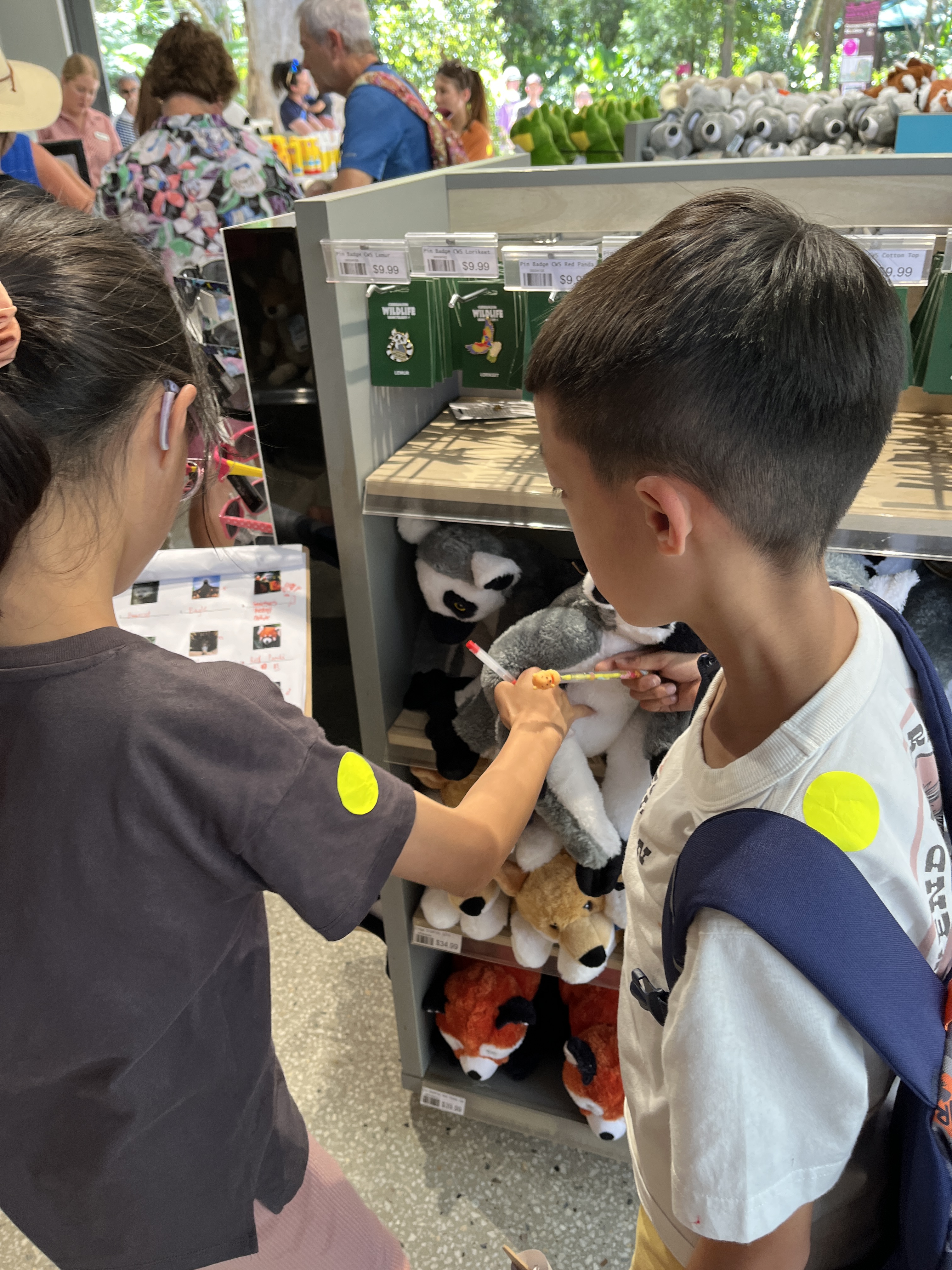 曾經去過的遊樂園區,以為他們會吵著說好無聊。結果熟門熟路的~規劃好準備要參觀哪些行程,什麼秀先看,再去哪裡看動物,要記得到裡面哪一間禮品店逛。最後再自己拿著零用錢,走進禮品店,逛完、買完禮物,跟店員說謝謝走出來 🤷
