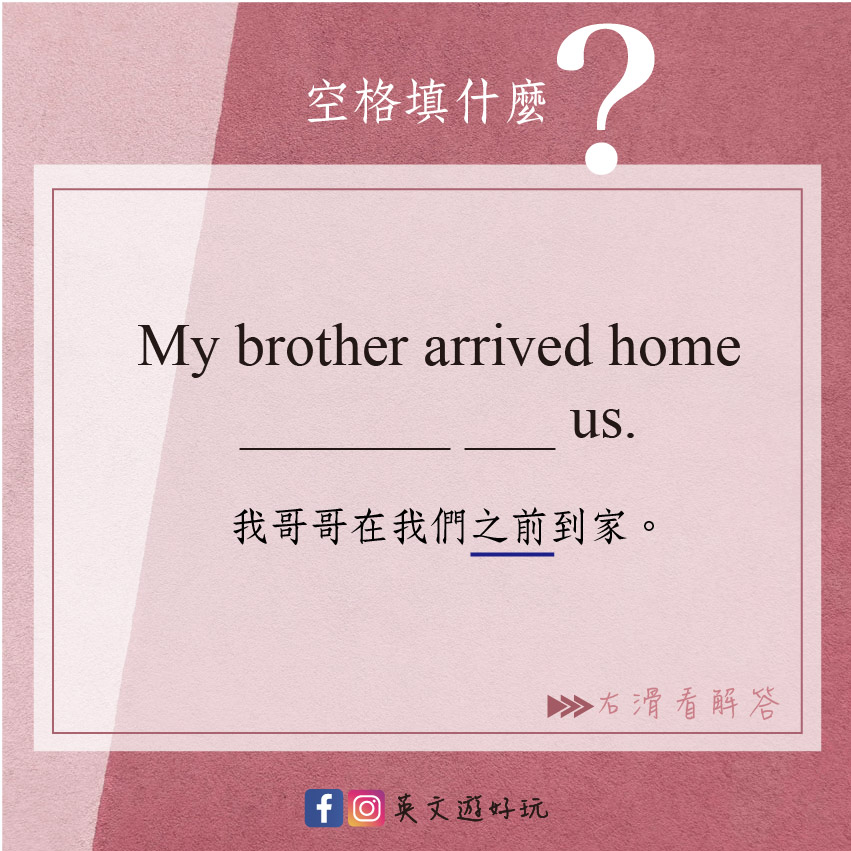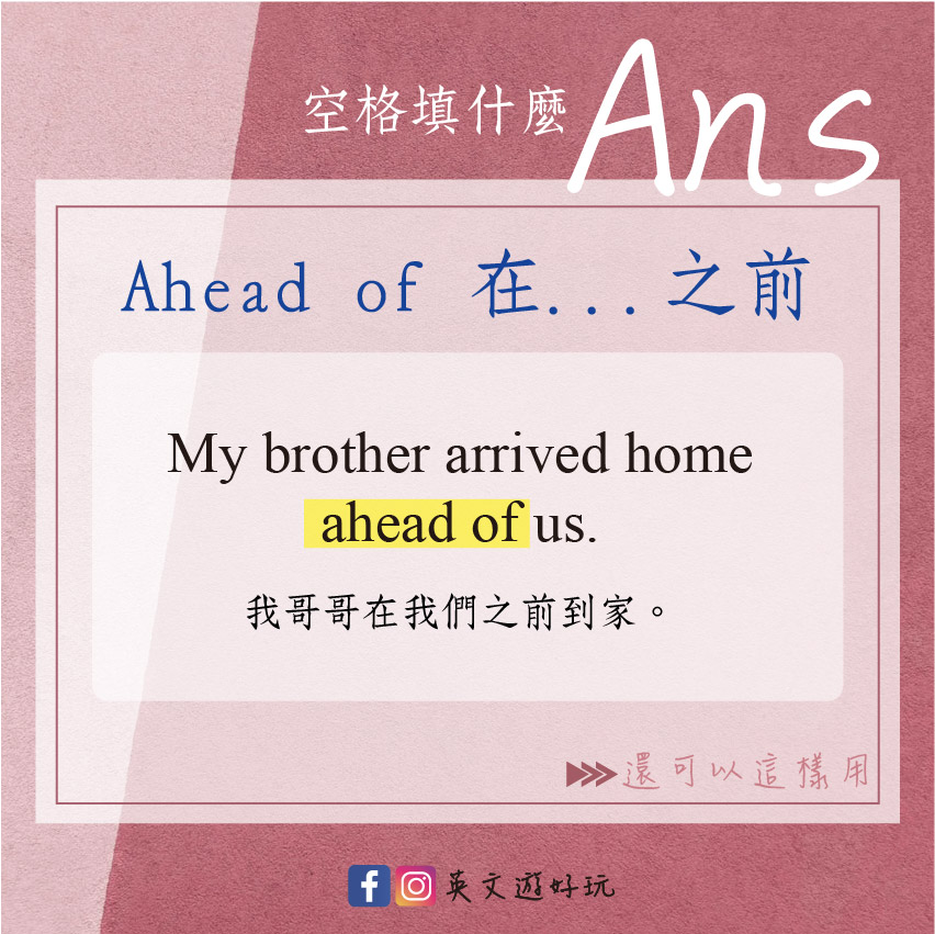 - My brother arrived home ahead of us. 我哥哥在我們之前到家。