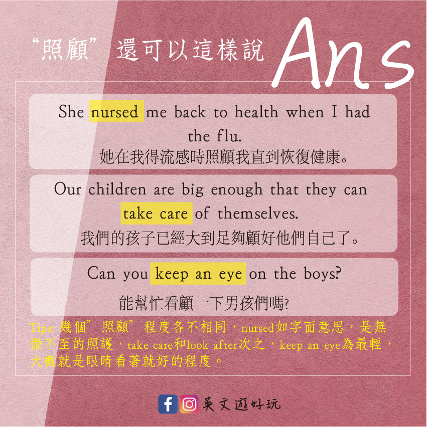 英文口語的「照顧」要怎麼說呢?以下這三個跟照顧有關的英文片語不能不知道!