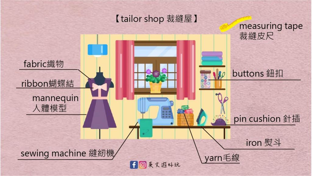 關於裁縫屋裡的各種大小工具,這些英文單字該怎麼說呢?學起來也是很有用的生活小單字!