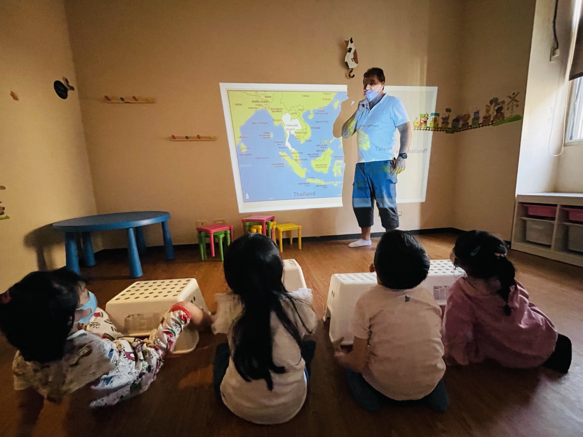 一周介紹一個異國文化,兒童初次接觸沒看過也沒聽過的國家,在學習時難免覺得抽象。我們會利用圖片和影片解說,結合勞作具體呈現給小朋友,幫助他們理解內容,進而吸收轉化為大腦的知識。