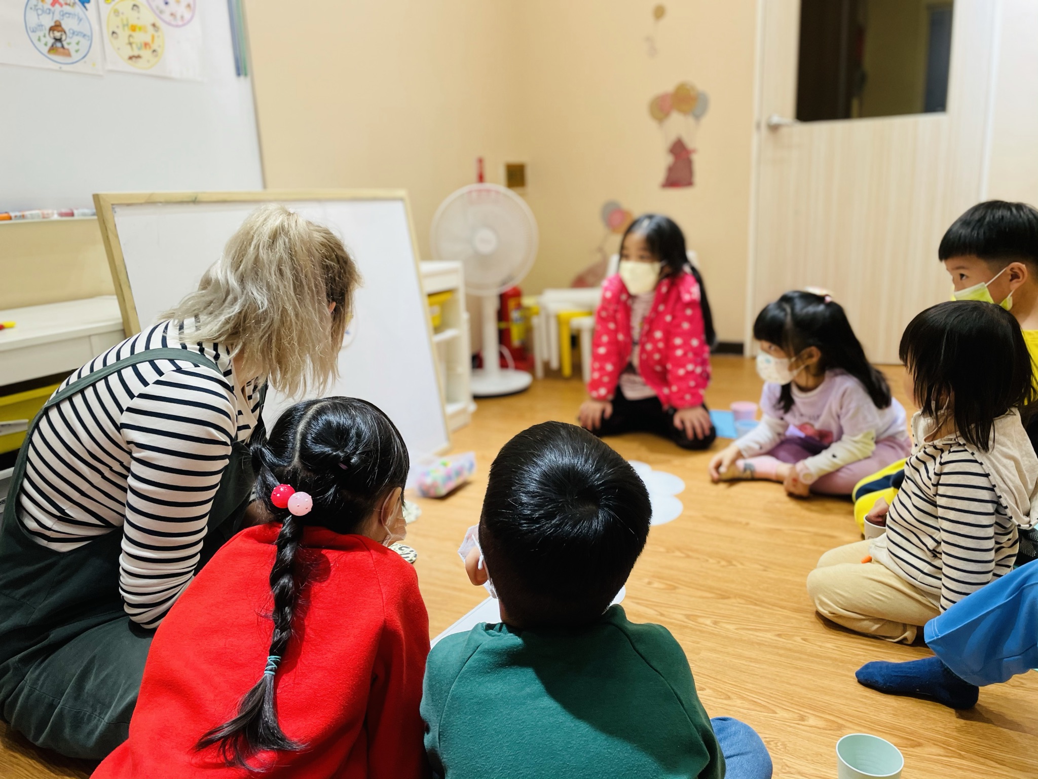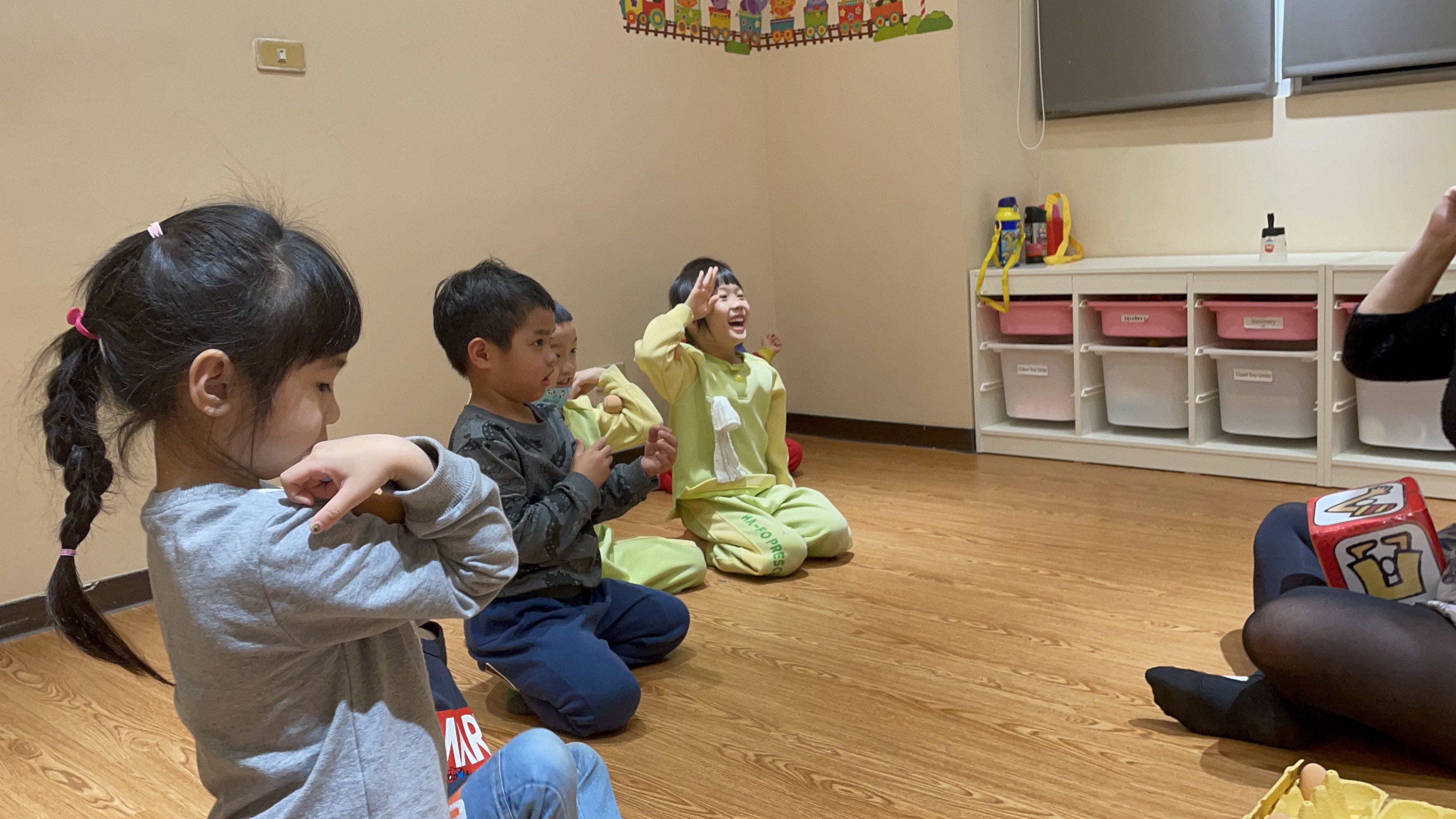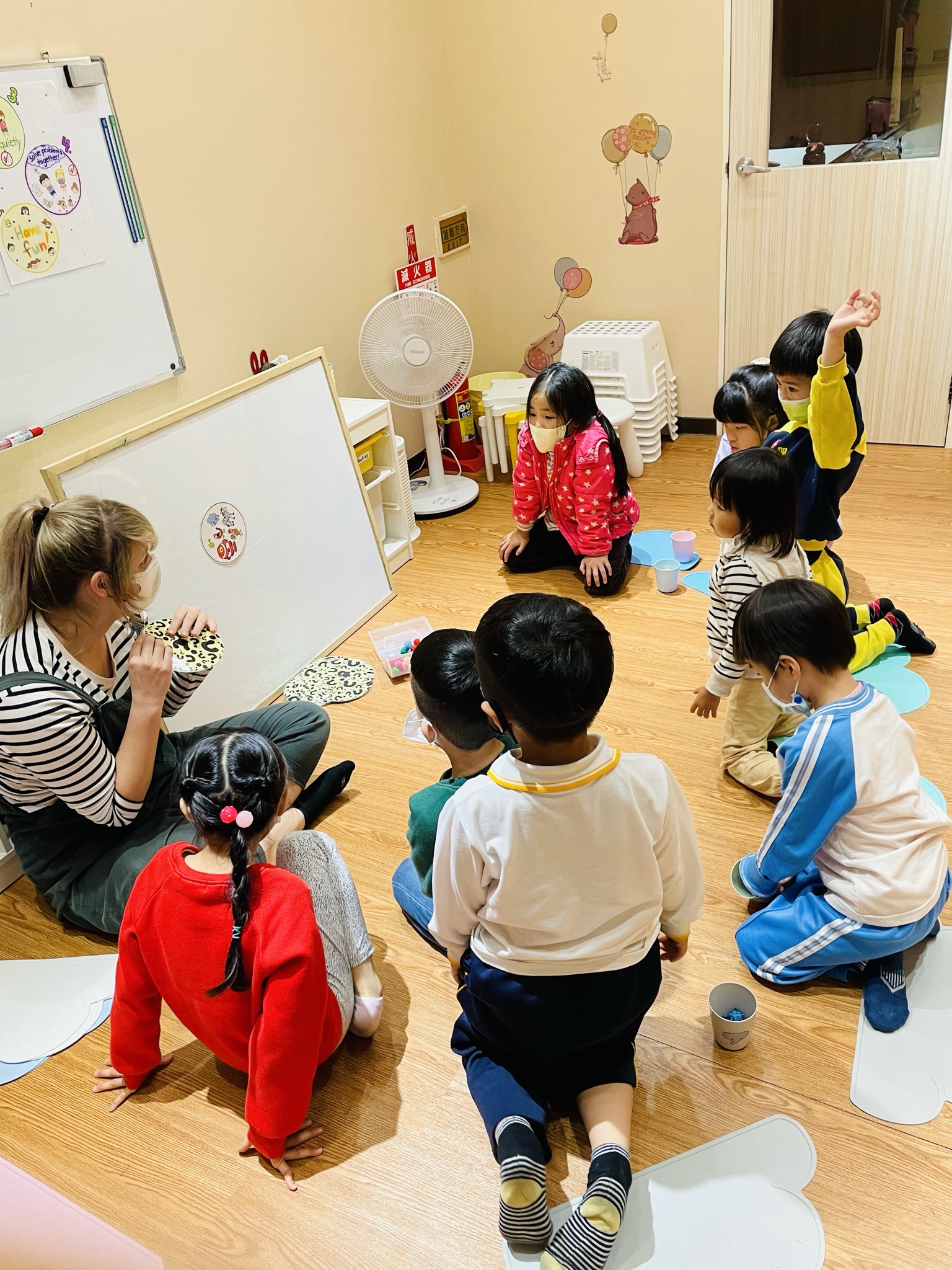 老師會用英文跟大家解釋遊戲規則,過程中也會鼓勵大家用英文對答,如果孩子英文卡住,這時候會幫忙用正確英文幫孩子把句型理順,這跟我們學習母語的模式是一樣的喔。