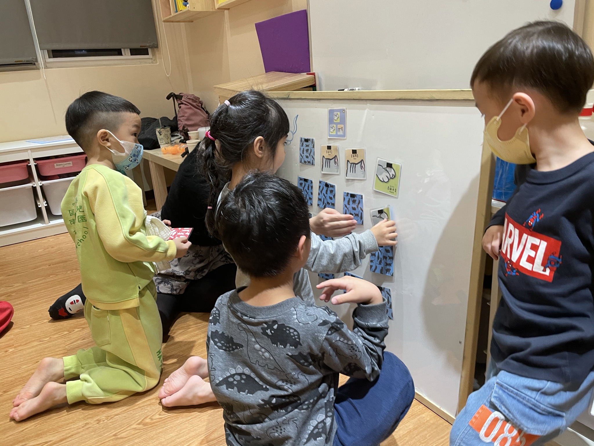 第3堂:小朋友獨立玩桌遊,老師在旁協助