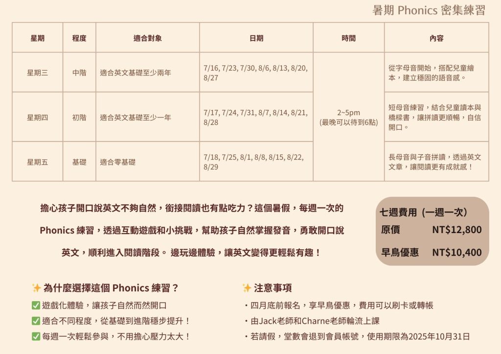 館內的家長們常常問,寒暑假的時候有沒有開放課程,因為擔心孩子長時間放假,不僅擔心孩子在家沒有事情做;也會擔心離開英文練習的環境太久,過了一個長假,會對語言的學習銜接不上。