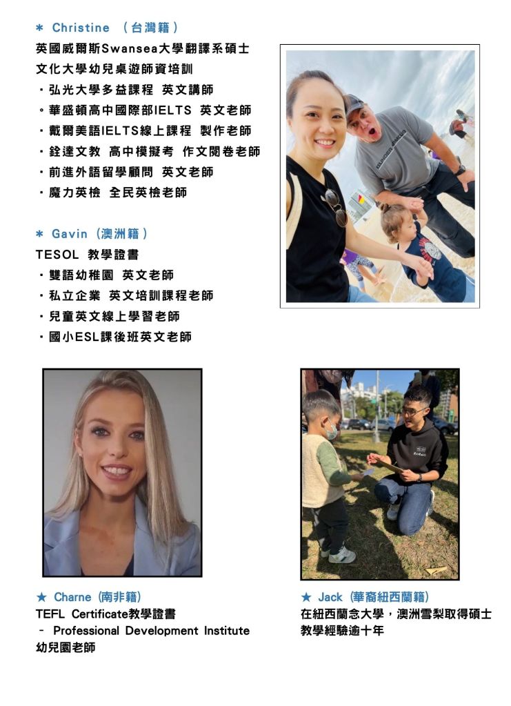 由擅長設計教案的Christine規劃活動大綱,最會控場,和抓住小朋友眼球的Gavin,要跟大家一起玩英文。