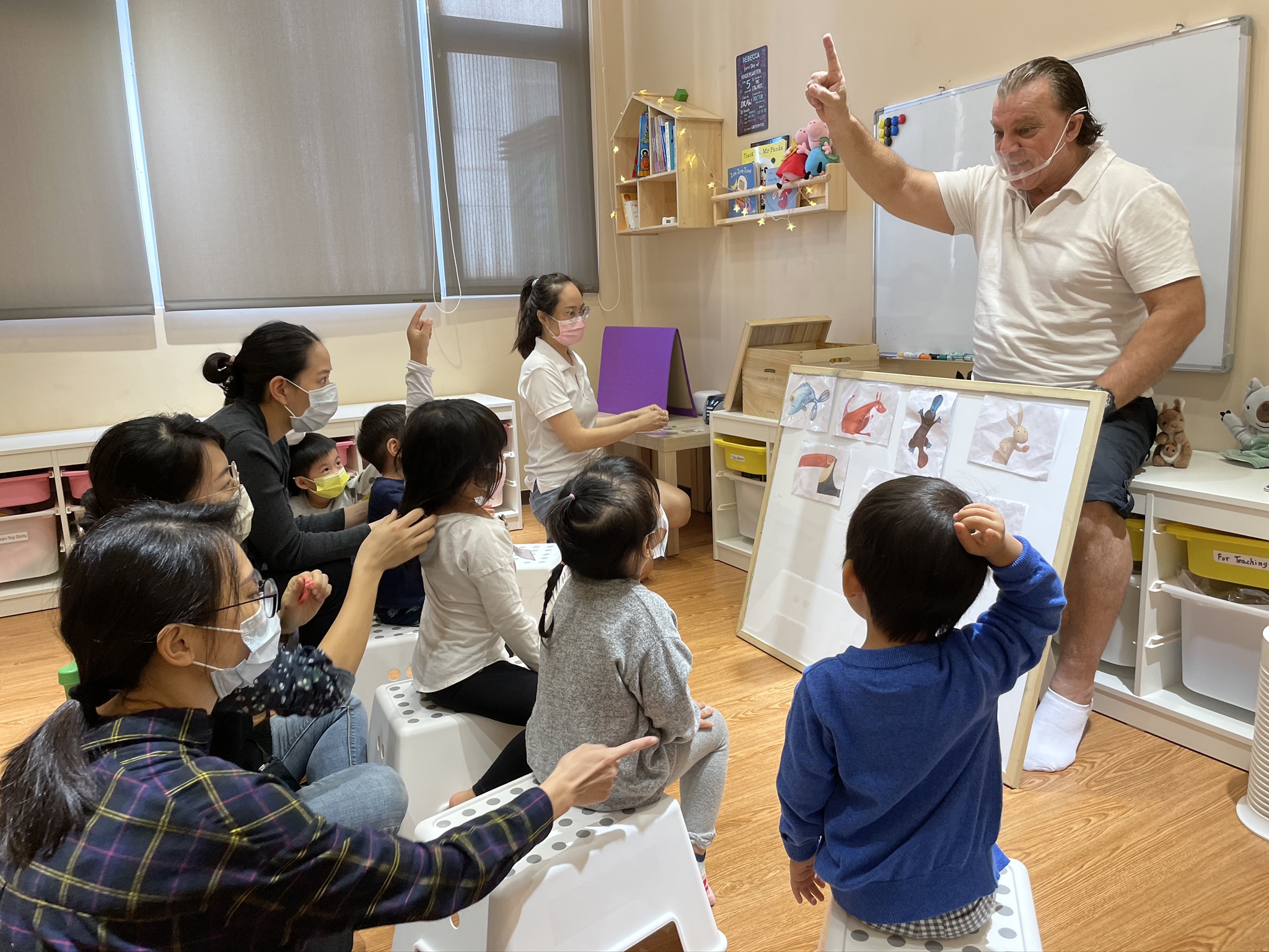 如果是剛開始牙牙學語的2歲小童,還在適應新環境,我們就會鼓勵他把音發出來,不標準也沒關係,重點是願意開口跟著模仿。