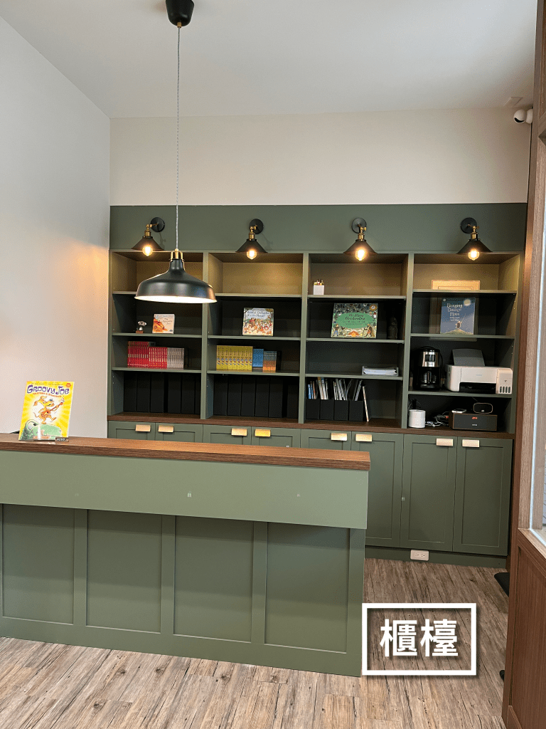 工作室2樓是聽故事玩遊戲的空間,帶二寶的爸媽們,可以在1樓喝咖啡、吃餅乾休息喔!