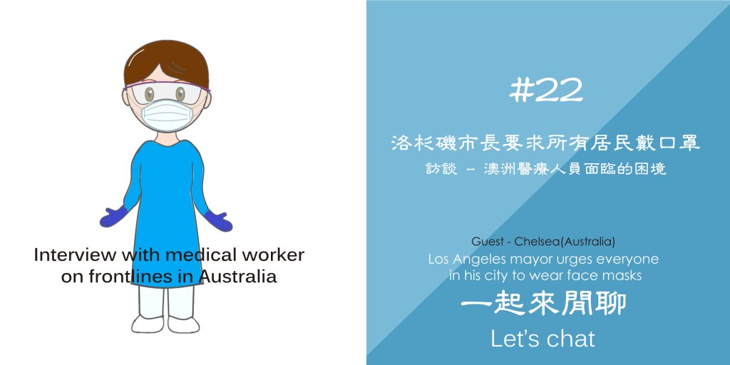 節目前半段,我們討論加州市長鼓勵市民戴口罩的新聞,我跟Gavin討論配戴口罩的看法,Gavin也分享他認為戴口罩對疫情的幫助如何。節目後半段,我們臨時call out在澳洲診所工作的醫療助理,她透露澳洲現今醫療的窘況,更重要的是,她還是強烈呼籲大家,非必要的話~待在家吧!