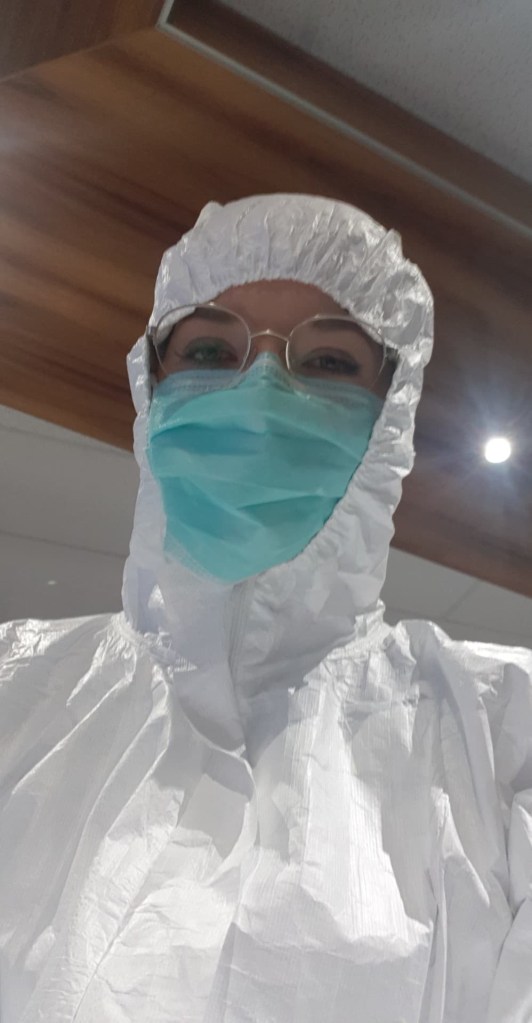 Chelsea站在第一線(frontlines),很可能會接觸到新冠狀病毒的病人,診所為了保險起見,規定這個時段的工作人員,必須要穿上防護衣(PPE)。穿上防護衣就不能再吃東西、喝水或上廁所,也不能碰不必要的物品,不然防護衣暴露了,就必須要丟棄。