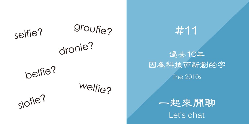 而智慧型手機的發展,也創造了許多新的詞,像是自拍照selfie,從這個字延伸出來的還有「團體自拍照groufie」, 「翹臀自拍照belfie」, 「炫富自拍照welfie」(也有人說是「健身自拍照」), 「慢動作自拍照slofie」
